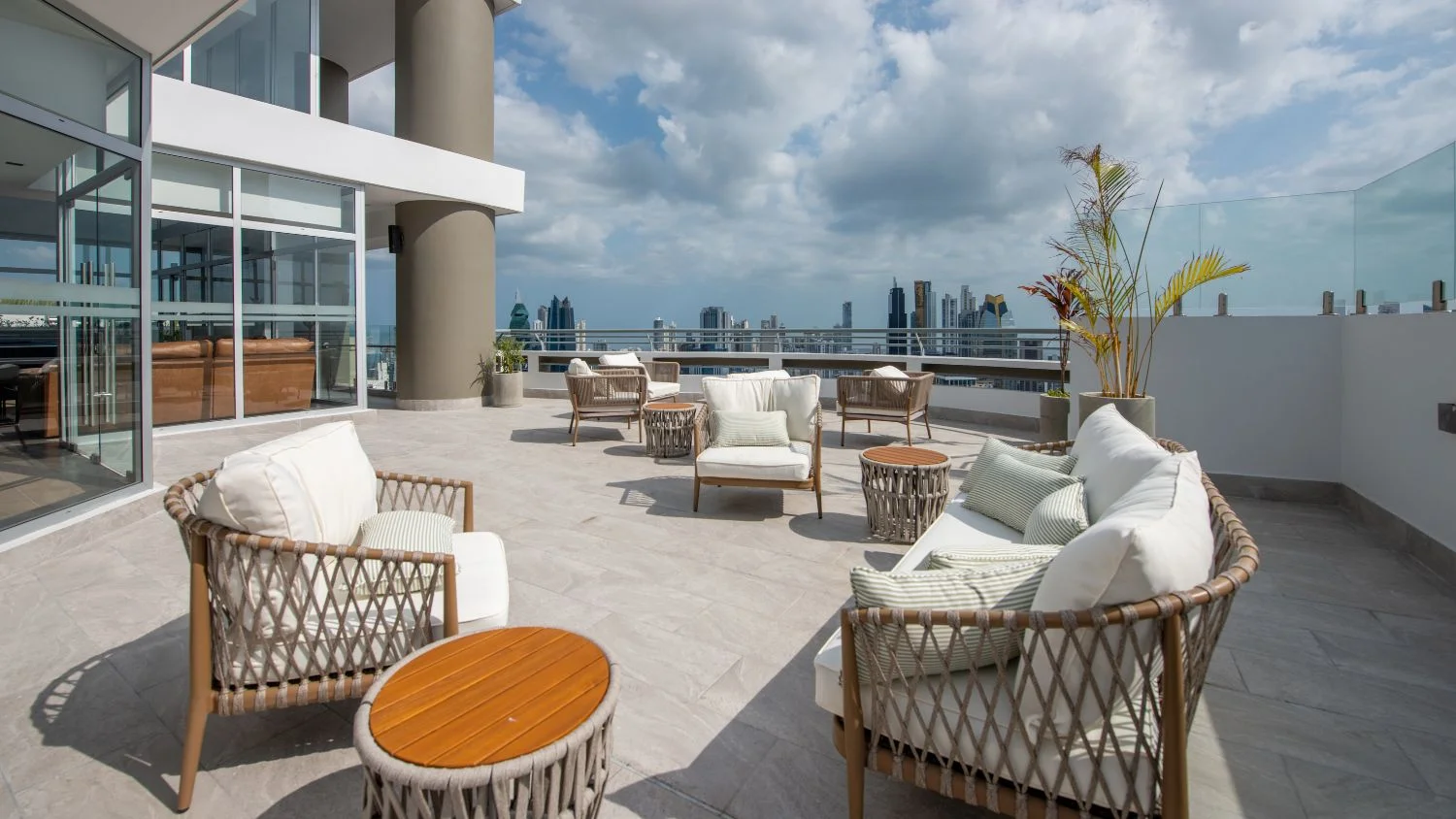 Es una torre residencial de 46 pisos en el corazón de El Cangrejo, un barrio caminable y lleno de vida. El edificio reúne amenidades pensadas para el día a día: piscinas, sky lounge, gimnasio, sauna y jacuzzi, kids club y sala de juegos, con áreas comunes de diseño contemporáneo.